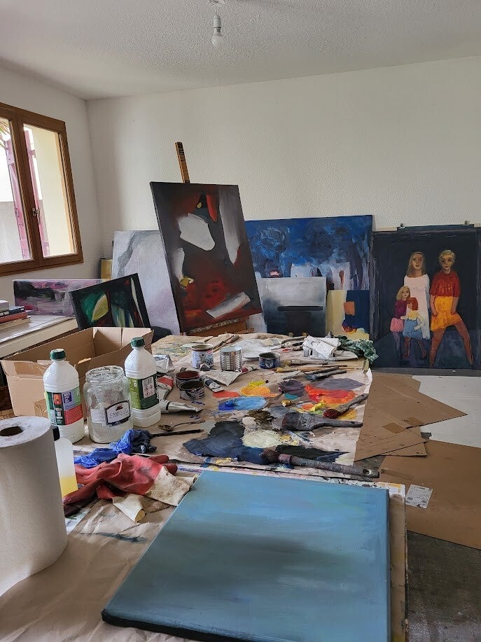 « D’un monde à l’autre " c'est un parcours comme on feuillette un carnet de route. On y retrouve des paysages, des scènes intimes, des évocations sensibles, mais aussi des compositions plus libres où la couleur devient espace, vibration, souffle. Ces œuvres témoignent d’un même fil conducteur : une attention au geste, à la lumière, à la matière, et à ce moment fragile où la peinture commence à dire quelque chose qui dépasse l’image.